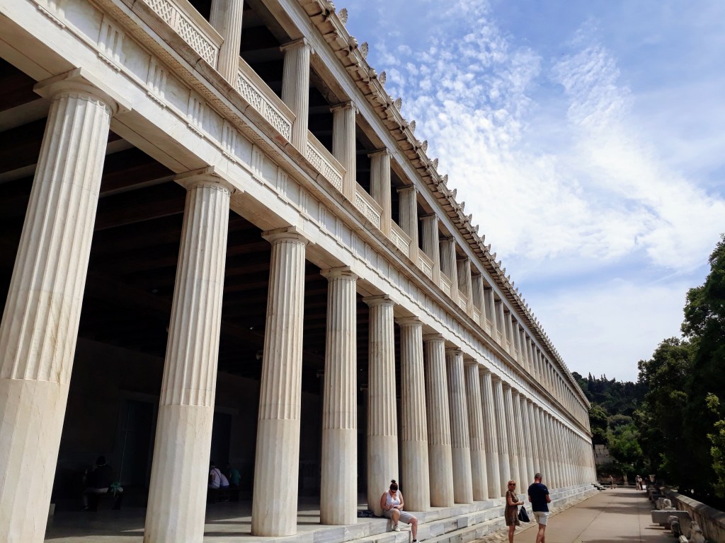 The amazing Agora is the marketplace of ancient Greece. This market has been closed for centuries, but it is opened for tourists to walk the ancient streets where Socrates and Plato used to walk, and see remnants of the ancient stoas, buildings and statues. Agora literally means gathering place.